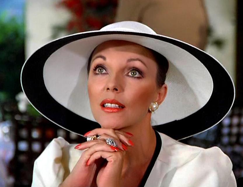 Joan Collins rezando un padrenuestro para expiar sus pecados por ser tan mala y tan perra - ‘Dinastía’ contaba entre 1981 y 1989 las aventuras de la adinerada familia Carrington y era una soap ópera (que para quien no sepa lo que es yo te lo defino como «el culebrón a la americana») que continuaba el éxito de otras como ‘Dallas’. Pero es que además fue la última gran soap opera, pues a partir de entonces lo que comenzó a triunfar como el cigarro electrónico fueron las sitcom o comedias de situación.