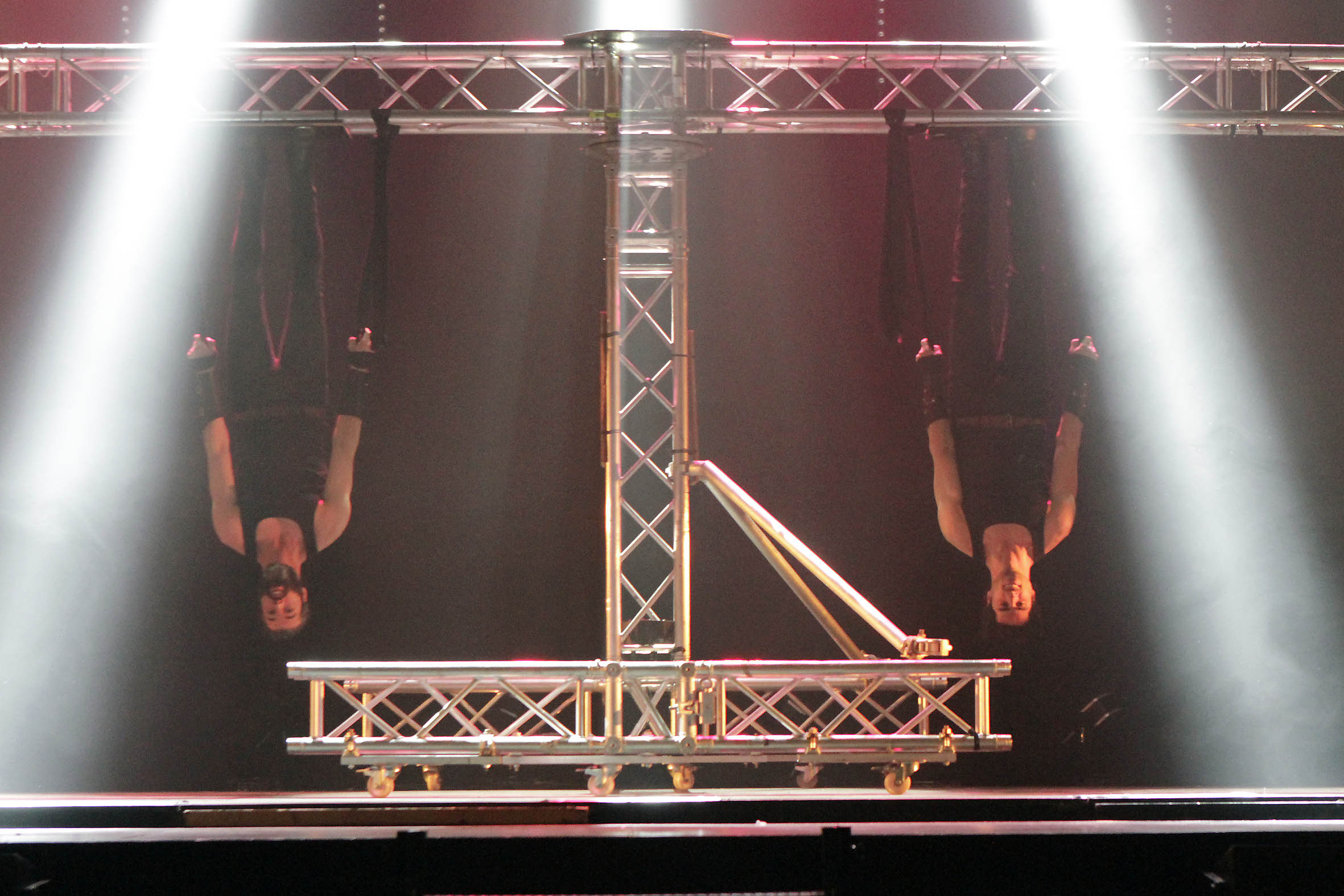 Elías: En nuestro caso no hay suplentes porque es casi imposible encontrar una persona que toque el violín, que al mismo tiempo zapatee y haga piruetas. Por otro lado somos hermanos y es difícil entrar. Lesiones ha habido pocas pero las ha habido, y precisamente subiendo las escaleras Aaron ha dicho “me duele el pie” porque se lesionó durante la preparación de este espectáculo, pero lo que toca es estar aquí, subirse al escenario… y aguantar si duele.