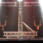 Elías: El espectáculo combina muchos elementos, y salió todo de un día en Italia en el que perdimos un vuelo por algo que pasó, un volcán creo, y en el aeropuerto empezamos a hacer una lista de temas legendarios, clásicos, rock, todos muy diferentes. Y en un año y medio fuimos poniendo y quitando, un trabajo muy intenso y acorde a la versatilidad del espectáculo, donde hay danza, artes marciales, equilibrismo… Es un trabajo muy loco, pero muy coherente.